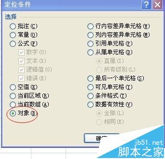 4、然后,在弹出的对话框中选中“对象”,然后点确定