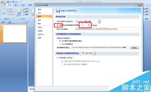 5、新出现的对话框里设置保存间隔时间,草稿存放位置,单击“确定”,如图: