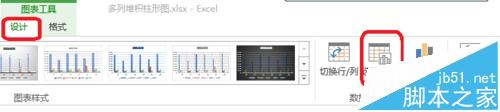 2、点击图表工具——设计——选择数据——图表数据区域(把辅助列加进去)。
