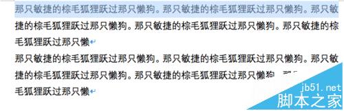 将光标移到文档左侧,当箭头超右时,按住鼠标左键,拖住到某行,即可选中多段文字。