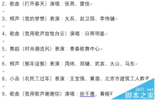 4. 跟我一步步对齐春晚节目单。下图是一张未做改动的节目单。我们的目标是将这个节目单中的表演者等对齐。