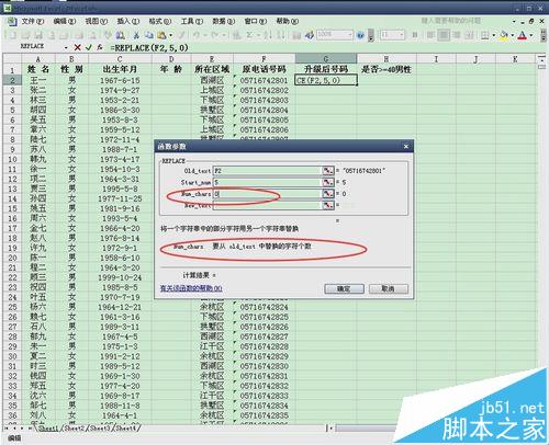 1、将使用REPLACE函数对电话号码进行升级。在(0571)后面加上“8”。