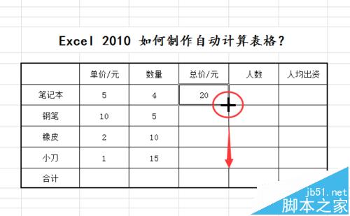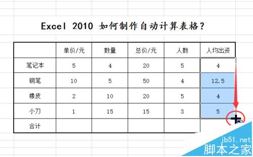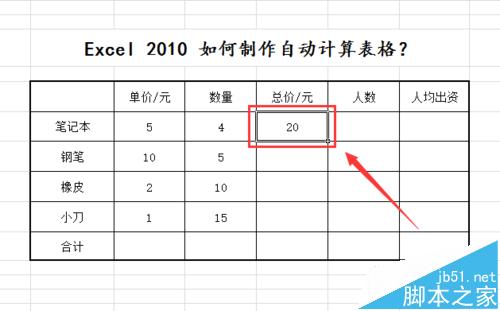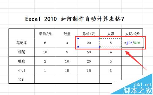 8、这时候,自动计算的表格就制作完成了。当我们修改“笔记本”的单价时,会发现其总价和人均出资均发生了变化!