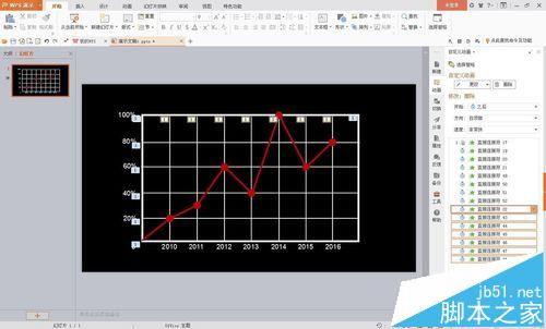 19、为直线添加动作进入-擦除-之后-自左侧。然后全选文本框、直线、图文框,添加动作路径-直线-之后,使文本框带动图文框进入画面。
