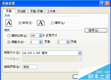 2、打开“页面设置”对话框,在“缩放”功能下“调整为”1页宽,2页高,记住了遇到这种情况,页宽为始终为1页,页高你要打印多少页,就设多少页宽。