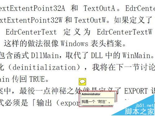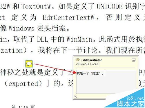 5、添加完成后,可以看到一个附注的图标,显示的非常简洁。把鼠标移动到这个图标上面,就会弹出一条附注内容的预览。