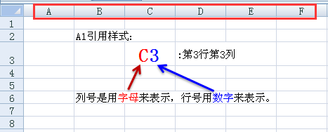 从这里,我们可以看出,A1引用样式和R1C1引用样式,有相通的地方,但也有不同。比如列号,在R1C1引用样式下,列号还是按数字1 2 3 ...来表示,但在A1引用样式下,列号用字母A B C...来表示。