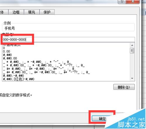3、我们在“数字”界面单击下选中【自定义】,然后我们在“类型”里面输入000-0000-0000的格式内容,就是我们手机号码的11位数字显示格式。输入完成我们就点击【确定】就可以了,我们看看下面图示的效果吧~
