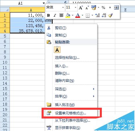 2、打开单元格格式的方式还有两个最常见的,一是全部选中区域右击选择【设置单元格格式】,二是“开始”菜单里点“数字”选项卡右下角的小箭头,都可以打开单元格格式,在“数字”界面操作。