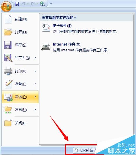 3、点击office按钮,选择excel选项