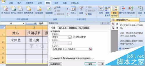 1、限制表格的数据录入范围,首当其冲就是数据有效性了,没错,今天我们要分享的就是数据有效性。选择A1:C6单元格区域,工具栏-数据-数据有效性-数据有效性,在弹出的数据有效性对话框中,选择设置选项卡,允许下拉列表选择自定义,公式文本区输入公式“=DATE(2016,5,1)>=TODAY()”