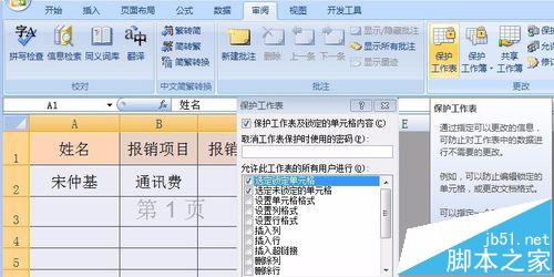 4、工具栏-审阅-保护工作表,根据提示设置保护工作表密码