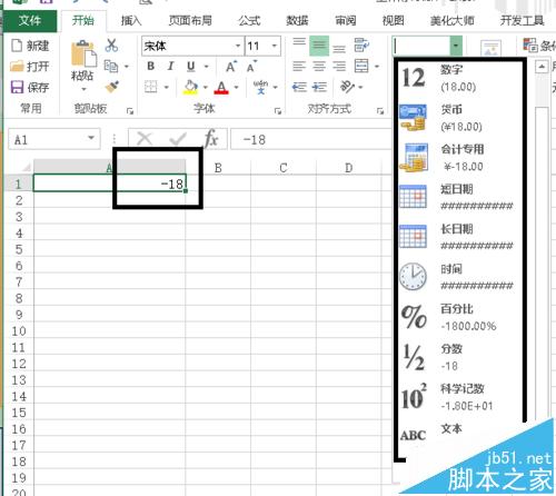 2、出现这种情况主要是因为在常规的输入中,Excel内的()正好与-一致,也就会造成这种情况,此时我们看单元格格式,都会显示成“-18”的样式
