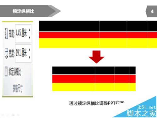 4、通过锁定纵横比调整PPT行高,这样可以不使PPT变形。