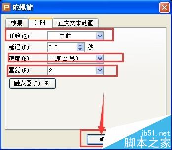 5、点击添加效果 选择强调 选择陀螺旋效果