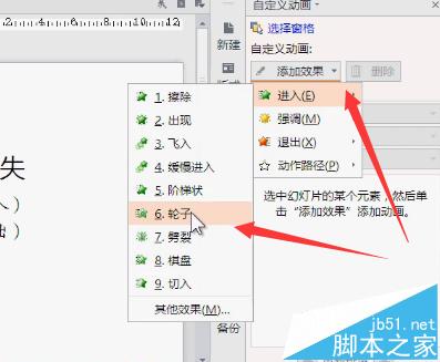 2、绘制完成后,点击动画,在添加效果里,点击进入。然后选择动画的种类。