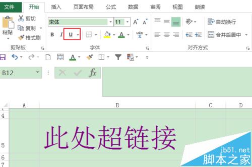 3、现在开始修改它的样式。首先去掉下划线:选中链接所在单元格,点击菜单栏“开始”,取消下划线