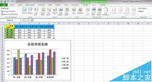 1、插入图表后,点击选中图表,菜单中就会出现新的菜单项-chart tools,在这个菜单项中可以进行图表的设置,这里着重介绍layouts功能。