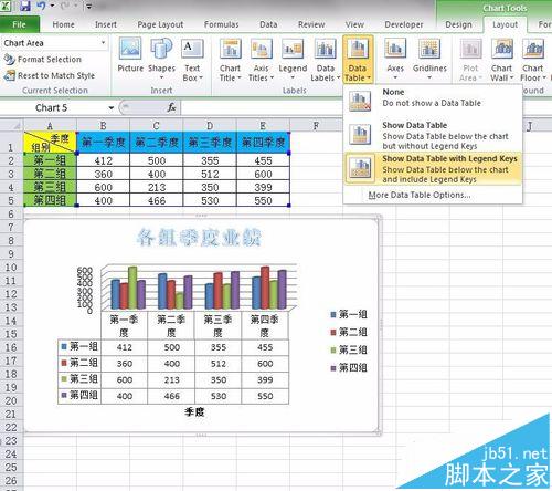 4、还可以在图表中添加数据表,这样就可以将数据和图表整合在一起,便于阅读图表信息。如图所示。