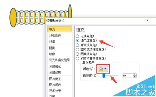 3、选中这两个椭圆形,单击鼠标右键,选择“设置对象格式”选项,调整两个椭圆形的颜色和线条,如图所示。