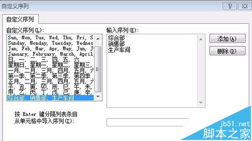 3、在打开的自定义序列对话框中,选择新序列,并在右侧文本区输入指定的排序序列,各字段之间以Enter回车键分割,点击确定按钮。