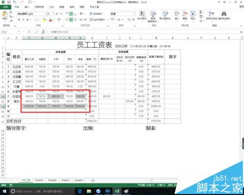 6、自动求和完成,但是本例中定位单元格的时候出现了一点问题,在12行中有空白单元格被错误定位,所以我们应该在定位前,编辑好源数据的格式。这样才能得到正确的结果。在源空白单元格中输入0值即可。