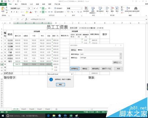 9、比如说我们需要求平均数,那么直接在查找编辑栏中输入sum,然后在替换栏中输入average,点击全部替换,即可完成自动求值的切换。