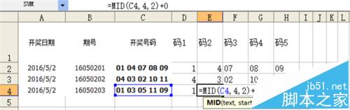 2、用mid函数分拣出第二个、第三个、第四个号码。