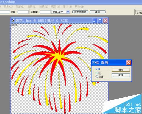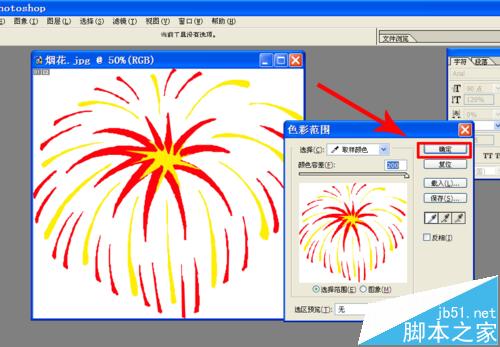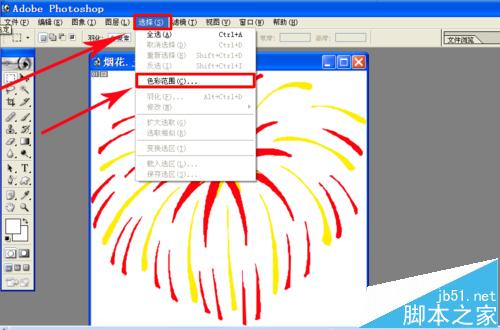 2、点击菜单“选择”——“色彩范围”,在“色彩范围”的对话框中选择“取样颜色”,颜色容差200,然后点击选择图片的白色部分,点击确定。再按键盘上的“Delete”删除键,去除白色背景,再点击菜单“文件”——“保存为”png格式,选择“png选项”交错“无”点击确定。我们的烟花素材就制作完成了。