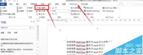 2、点击mathtype选项卡,再点击下属的插入编号后边的下拉三角,再点击格式化