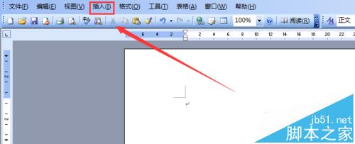 2、在上面的菜单栏里找到“插入”命令,如图所示: