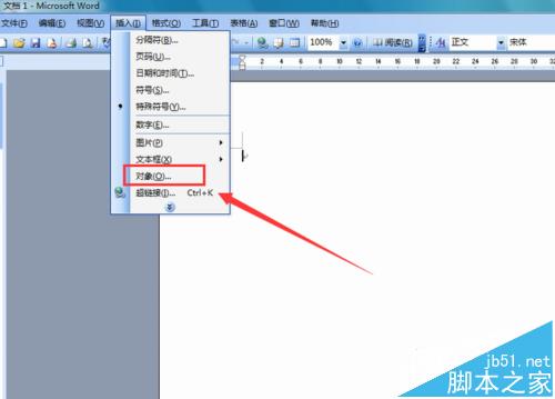 3、在插入菜单的下拉菜单里找到“对象选项”如图所示: