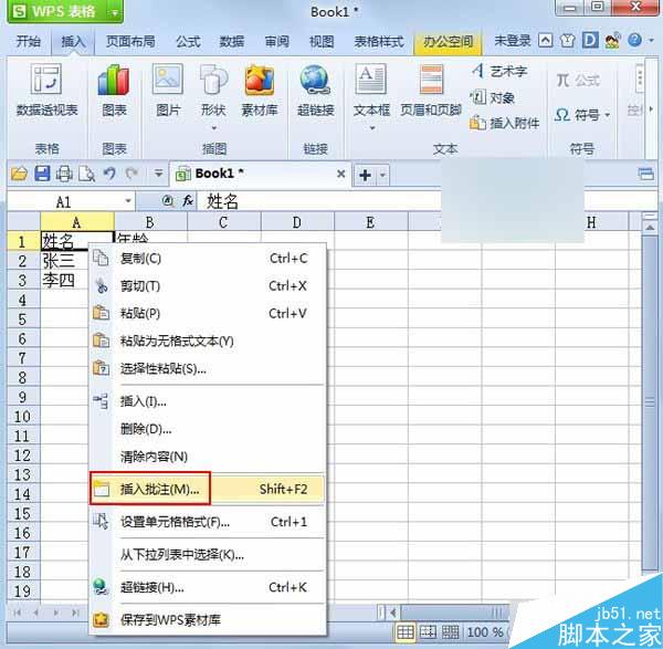 首先启动WPS表格,鼠标单击任意一个单元格,右键,选择插入批注。