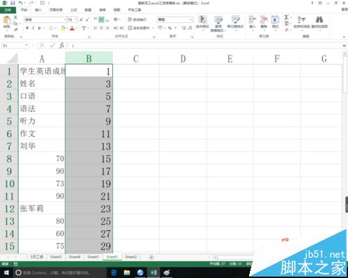2、输入数据,或引用源数据,这里我自行输入了一份学生成绩单,各位可以自行操作。