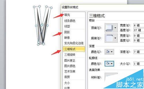 1、首先,选中“插入”选项卡下“形状”中的“三角形”,将其调整至如图所示的样子,然后调节其“形状格式”,使其凸显出三维立体的感觉,如图所示。