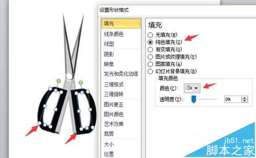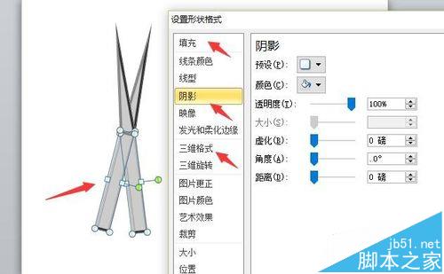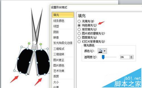 4、接着,绘制两个纯黑色的手柄,其形状在“插入”选项卡中可以找到,如图所示。