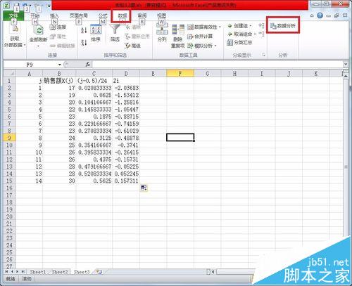 2、excel 2010的工具在“数据”中找,点击“数据分析”。