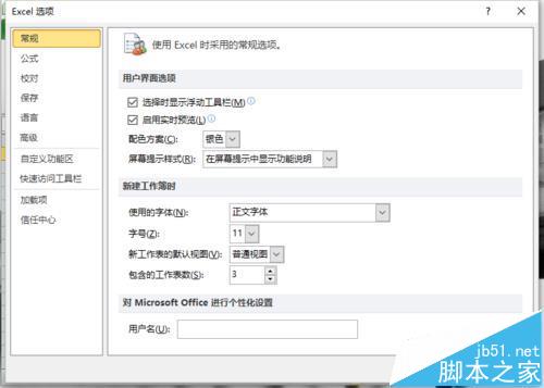 5、在弹出的“Excel选项”对话框中,选择并点击“常规”选项卡栏。如图所示;