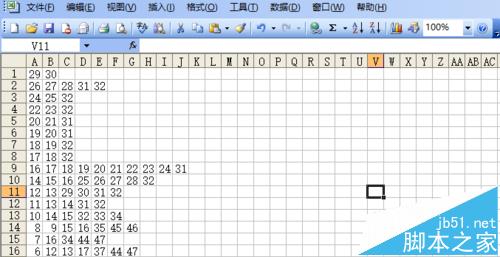 2、在“数据”表格里存放数据,共48行,这是1-16行。