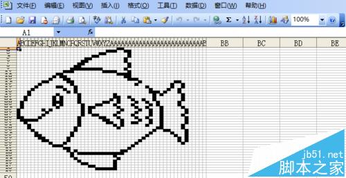 8、设置“鱼”表格区域单元格的列宽和行高,以控制整个图形显示在电脑屏幕上的大小。
