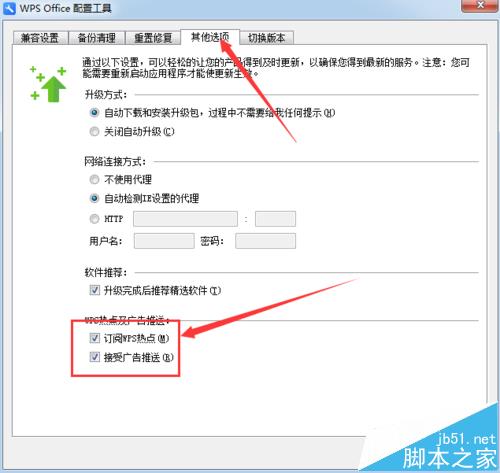 4、点击其他选择中的“订阅”WPS热点和接收广告推送,勾掉。点击确定退出,这样我们就不会在受到广告和推送的打扰了。