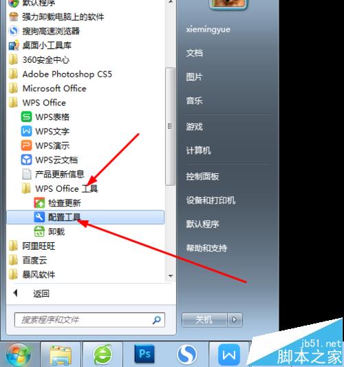 2、如图所示,工具文件夹里边的配置工具,点击启动工具设置。在这里可以对WPS软件进行更新,重新注册配置等等设置。