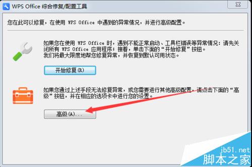 3、我们选择高级,如果WPS在使用过程中出现问题可以尝试修复一下,今天我们使用到的是高级中的其他设置项目。