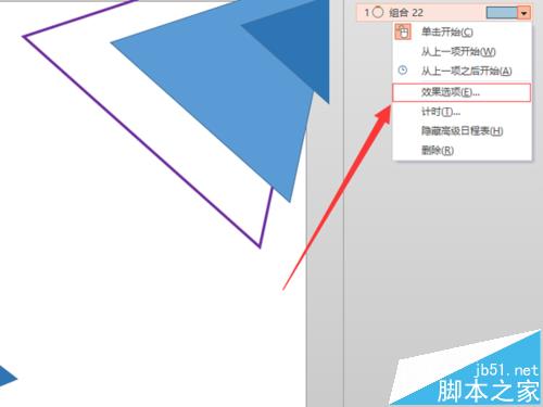 5、右键单击右侧“动画窗格”下的“组合”按钮,选择“效果选项”;