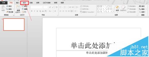 1、首先,请大家启动PPT软件,然后在PPt软件的编辑第一页选择“设计”选项卡。