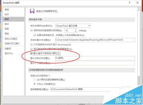 6、在“保存”选项右侧窗格中,找到“保存演示文稿”区域下的“默认本地文件位置”并在其中进行修改,然后再点击“确定”按钮即可。如图所示;
