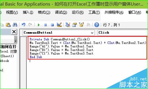 3、设计用户窗体。如图所示,设计用户窗体,添加3个文本框,2个Label控件和1个按钮控件。