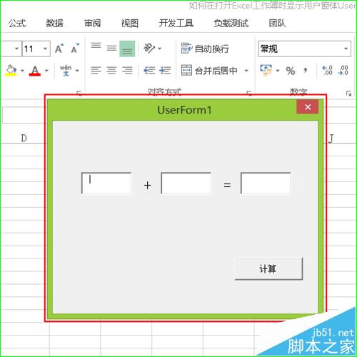 7、测试效果。将所有文件关闭后,重新打开保存好的.xlsm文件,会发现添加的用户窗体会自动显示出来,如图所示。