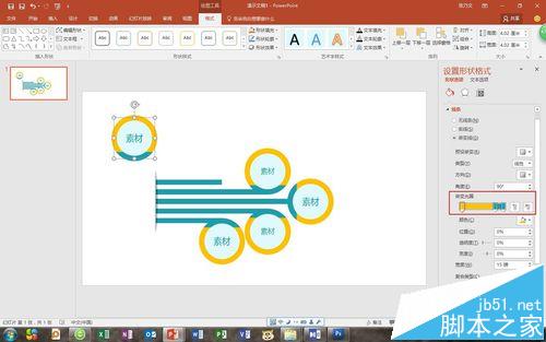 6、弹出“设置形状格式”的菜单,在里边终于发现和颜色有关的功能了,“渐变光圈”