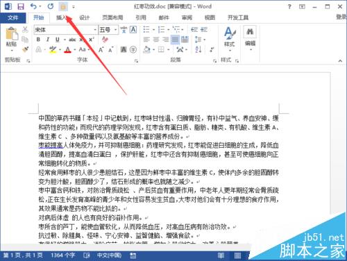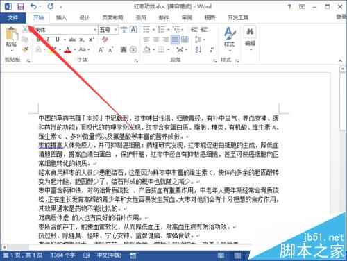 2、在打开的Word2013文档窗口中,点击左上角的“文件”命令选项。如图所示;